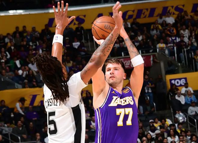 简单来说,对手面对马刺时,很难找到侧重点。湖人开赛以来状态不错,詹姆斯复出后迅速融入球队。特别是当老詹在场时,球队进攻效率高达126.7,联盟最佳水准。本赛季湖人最大的改变就是非常善于打胶着战,本赛季湖人拖到关键时刻的比赛(最后5分钟分差5分以内),8胜0负!但最尴尬的是,湖人输掉的6场比赛,都是大比分落败,场均净输对手18.5分!虽然东契奇场均35分+里夫斯场均28.4分+老詹场均16分7.6助攻,进攻火力非常凶猛,但湖人防线也漏洞百出。侧翼协防力量不够,内线只有艾顿能顶住压力,没替补。